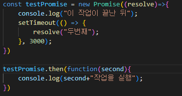 아까와 비슷한 코드지만 다른점이 있다면 함수가 아닌 Promise를 통해 처리했다.