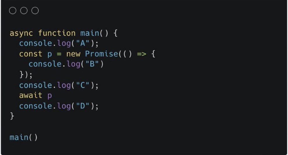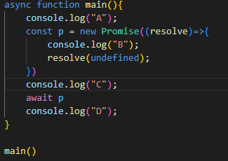 그렇기때문에 await p 에서 흐름이 막혀 밑의 D를 출력하지 못한 것이다.