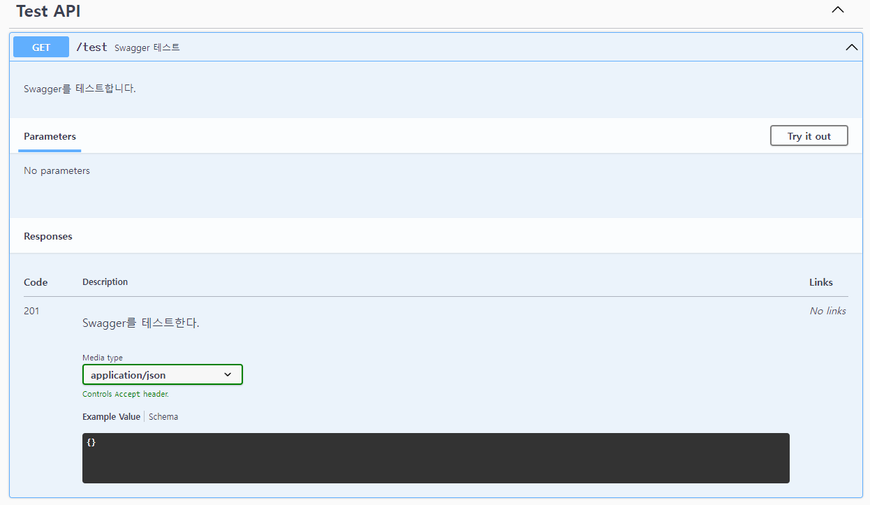 @ApiCreatedResponse({ description: 'Swagger를 테스트한다.', type: Object })